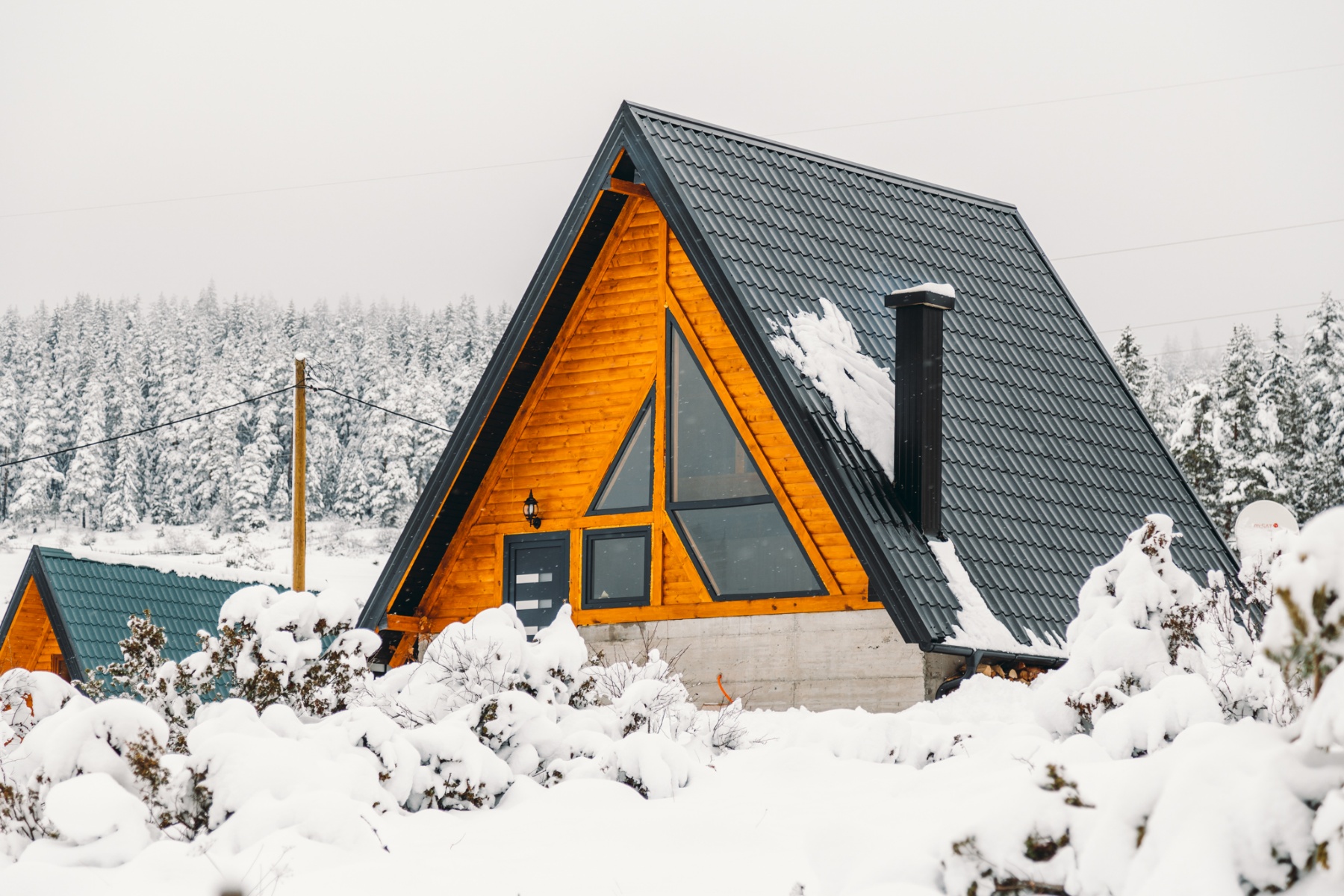 Inside, the cabin is cozy and comfortable, with a fireplace, a living room with a TV, a fully-equipped kitchen with all the necessary amenities, and a comfortable bedroom that can accommodate up to four people. The cabin’s traditional and yet modern design and use of natural materials add to its charm and character, making it a true hidden gem.